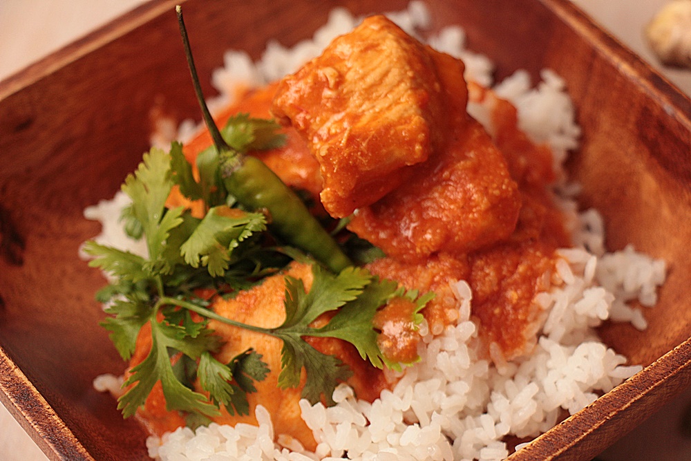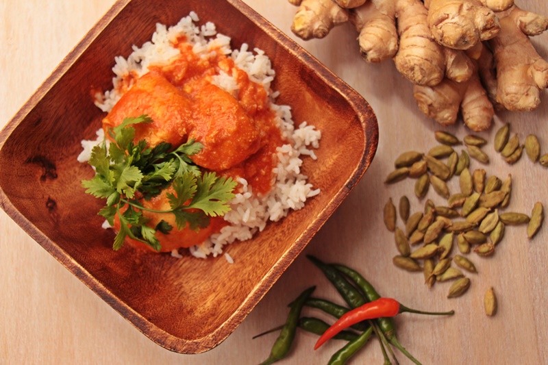 Ab und an überkommt mich das Fernweh und dann begebe ich mich auf kulinarische Reise. Diesmal zieht es mich nach Indien – genauer gesagt: in den Bundesstaat Punjab, nach Delhi. Dort entstand in den 50-er Jahren ein Rezept, das ganz nach meinem Geschmack ist. Da ich nicht gerade oft sehr scharf esse, bin ich bei einigen Currys etwas empfindlich. Da ist dieses Rezept genau richtig. Das wunderbar aromatische, butterzarte Hähnchen schmiegt sich in die leckere Sauce, die ich zum Schluss am liebsten mit Naan-Brot aufsauge. Wichtig sind dabei aromatische Tomaten und ein wenig Zeit, damit die Sauce schön schmurgeln kann.